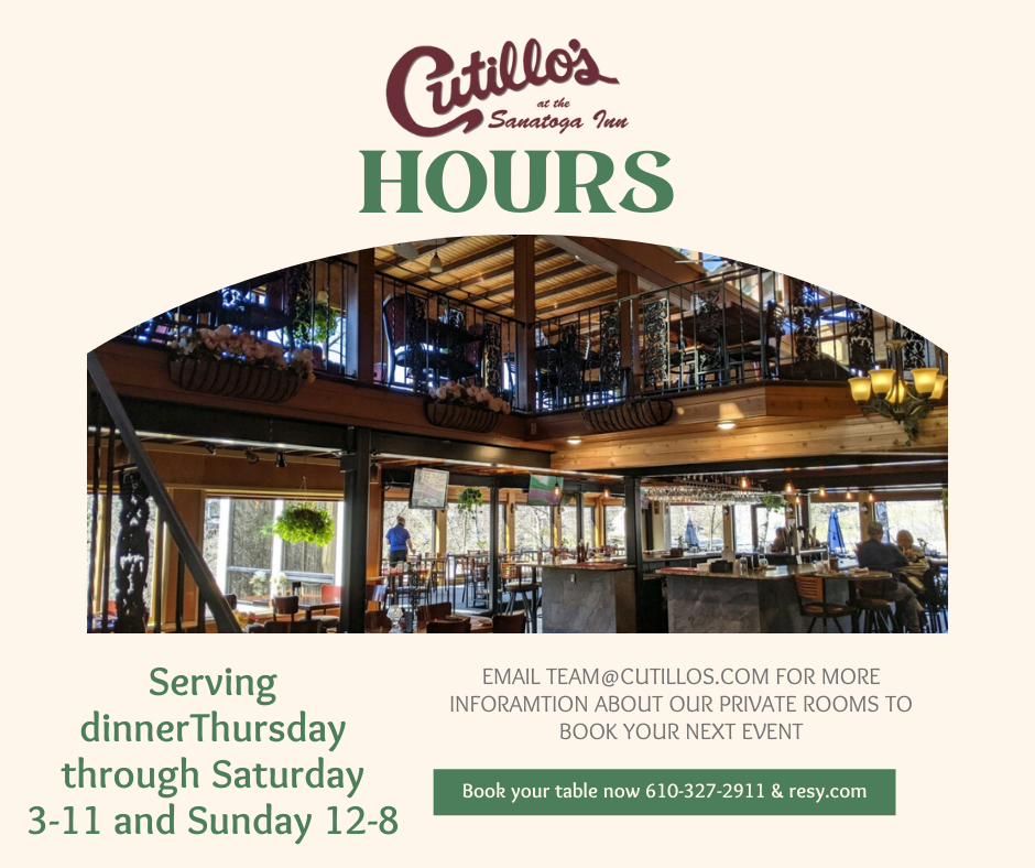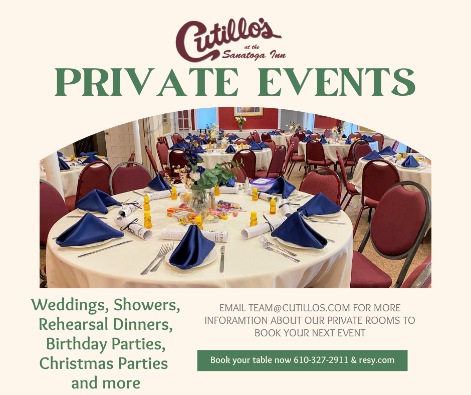 Cutillo’s Trivia Night, May 27th, will be Philadelphia Sports! It starts at 7:30pm and first and second places win prizes! Book your reservation and invite your friends! It is free to participate.